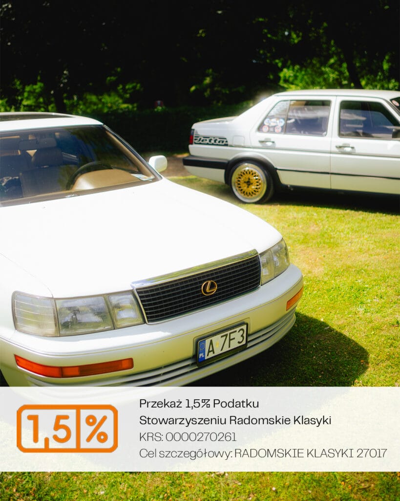 W tym roku po raz drugi mamy możliwość otrzymania wsparcia w ramach 1,5% podatku, co realnie pomaga dalej rozwijać naszą społeczność i organizować wydarzenia, które przyciągają tysiące miłośników klasycznej motoryzacji. Dzięki Wam w 2025 roku w ten sposób trafiło do nas 1998,99 zł co pozwoliło pokryć część kosztów związanych z organizacją spotkań Radomskich Klasyków.